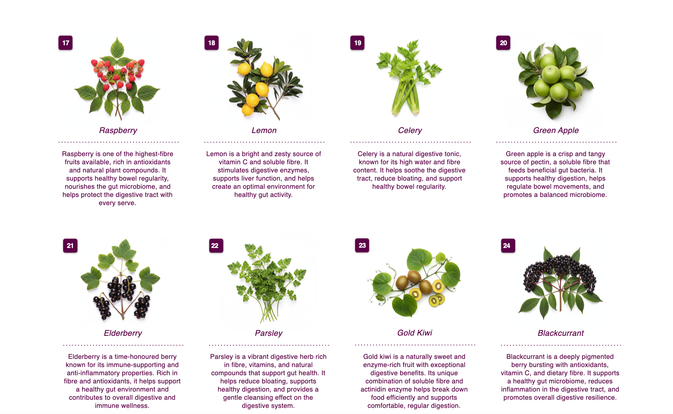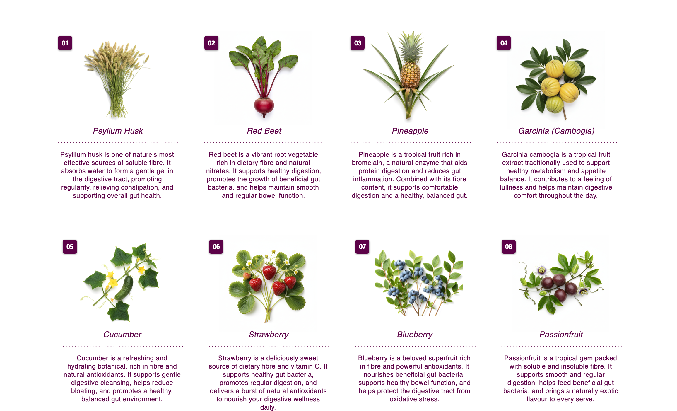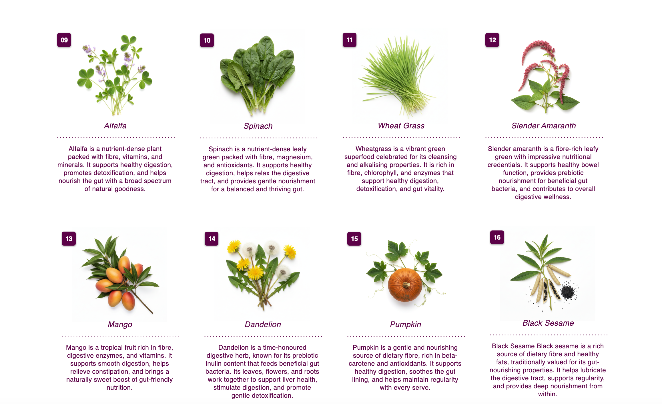 DONUTT features an exceptional collection of active botanical ingredients, each sourced and blended with the same care and intention as a master herbalist. Every formula is built around a signature botanical and harmonised with nature's most powerful digestive superfoods, creating a blend that is layered, purposeful, and deeply nourishing. Our ingredients are designed to bring a little joy and vitality to your everyday wellness.